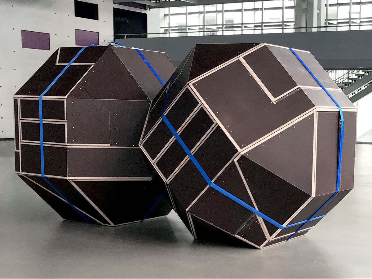 La première est une réplique sculpturale à l’échelle 1 : 1 des deux rhombicuboctaèdres de la photographie Les formes du repos n°1, de Raphaël Zarka. Cette version – non skatable– est composée de trente deux modules imbriqués dans la volumétrie de chacun des deux polyèdres.