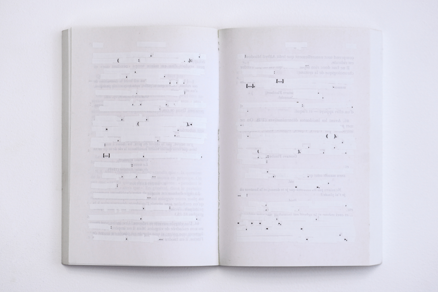 Leur contenu a été effacé, en prenant toutefois le soin de n'en conserver que les signes de ponctuation. Privés de toute valeur sémantique, ces objets basculent alors dans le champ de la poésie concrète.